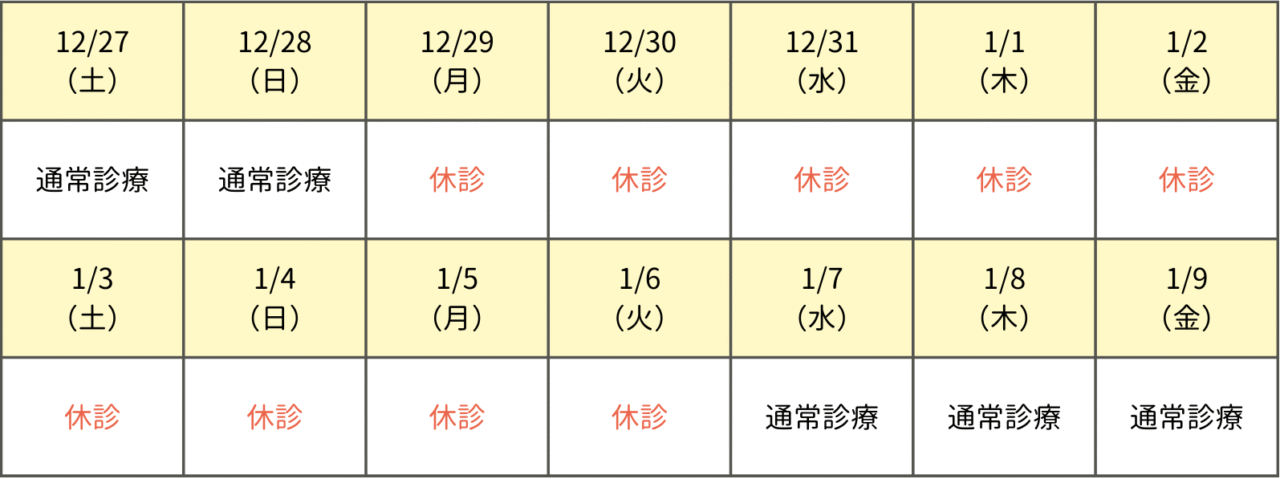 休診日:2025年12月29日(月)~2025年1月6日(火)