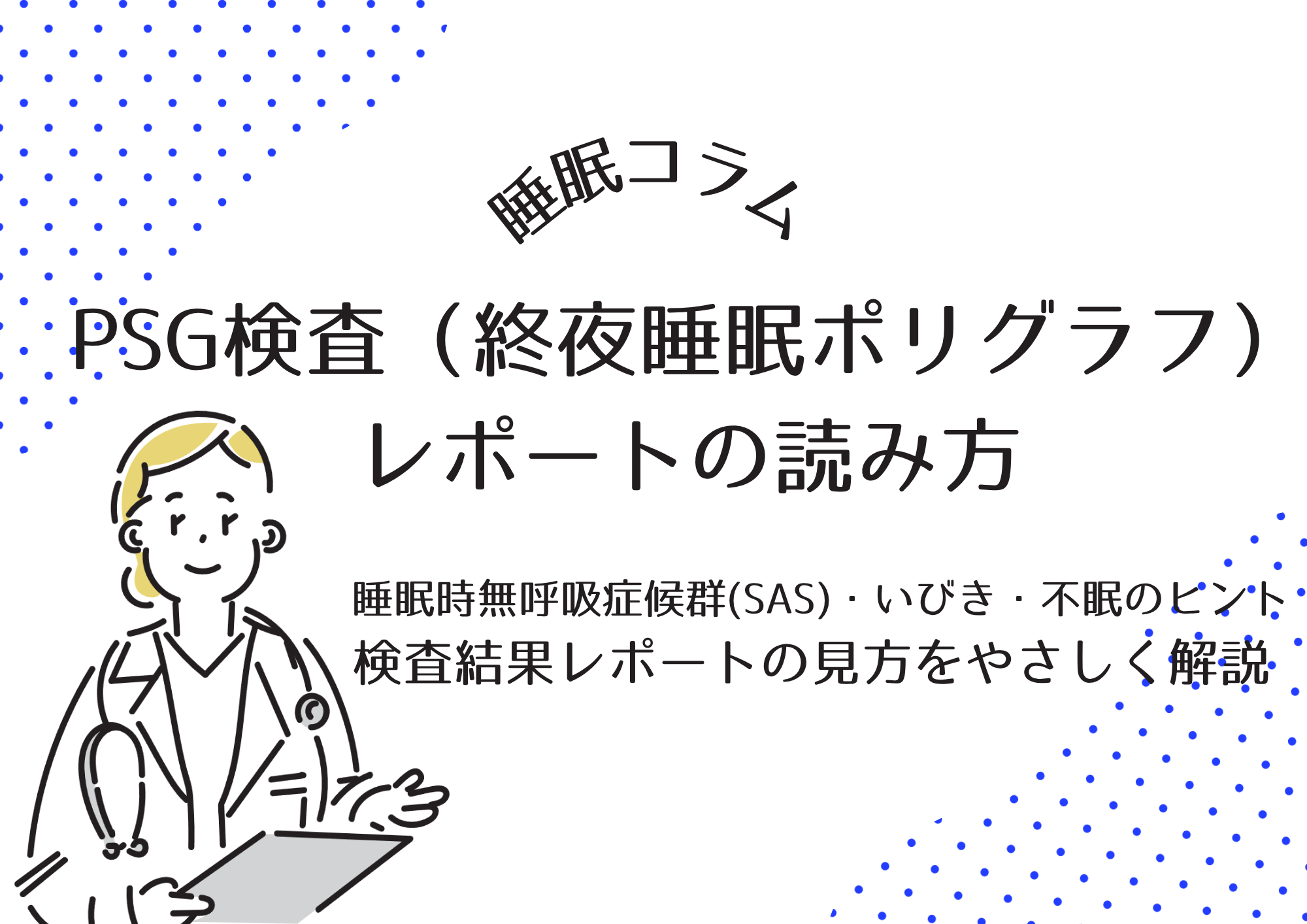 睡眠時無呼吸症候群の検査方法を、SAS2200やWatchPATなどの機器を比較しながら解説しています。