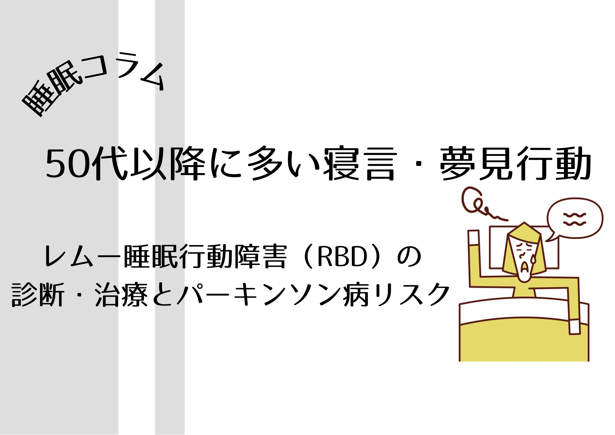 それは、レム睡眠行動障害(RBD:REM Sleep Behavior Disorder)という、れっきとした睡眠障害のサインである可能性があります。